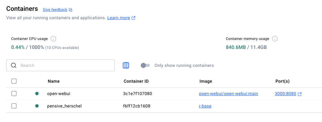 While it is possible to run containers inside Docker Desktop, it’s much easier to run them in the terminal.