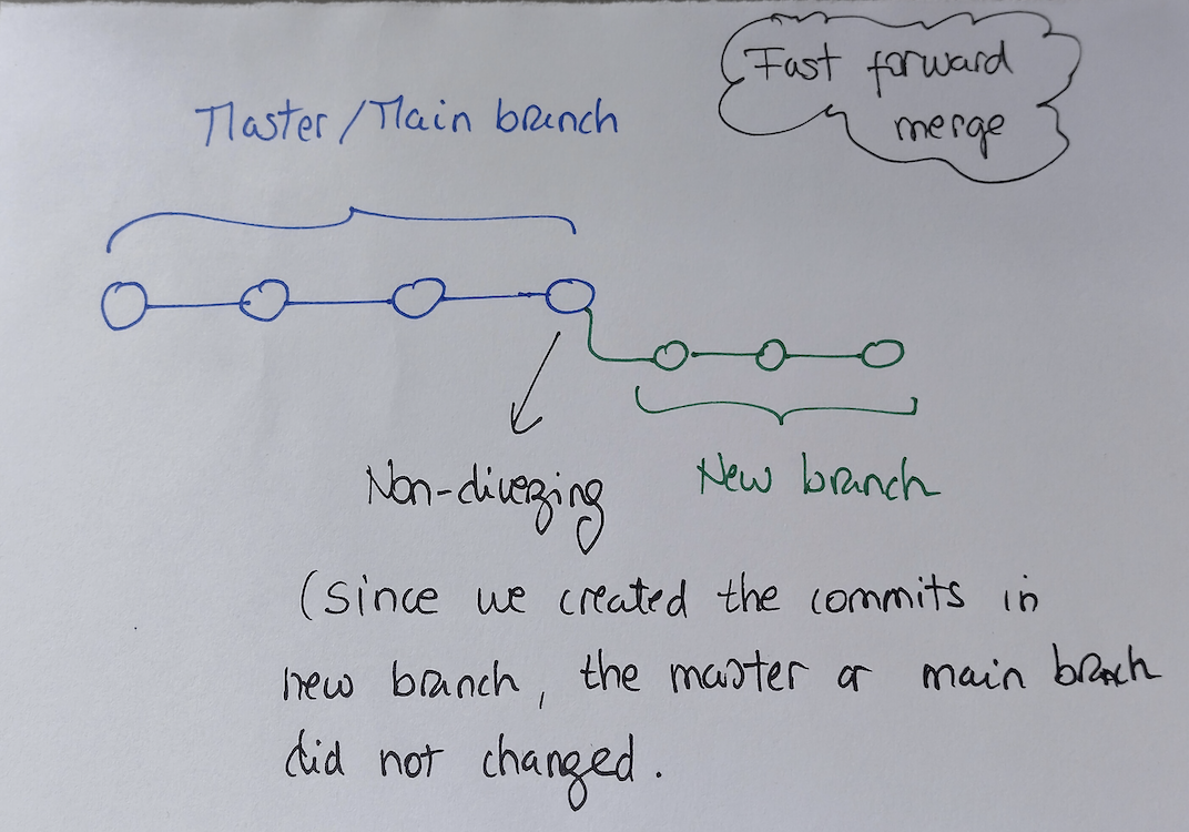 Suppose we have two branches: main and new_development and our goal is to bring changes from the branch new_development into our main branch: