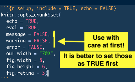 Best is to add this R code chunk at the beginning of the document before the libraries R code chunk.