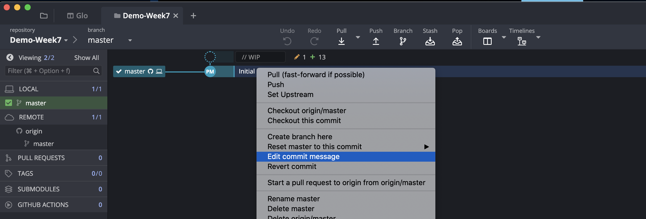 git commit --amendAmending a commit that you’ve already pushed to a remote repo is BAD practice and should be avoided