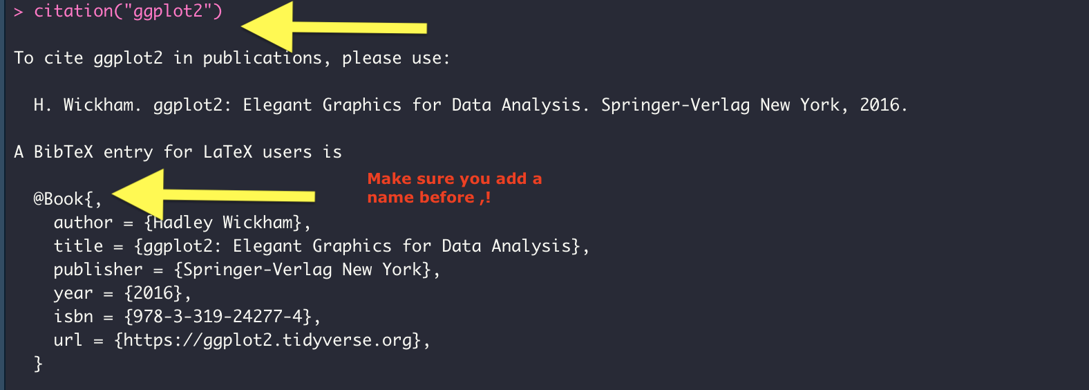 You can get the citations for R packages using toBibtex(citation("tidyverse"))